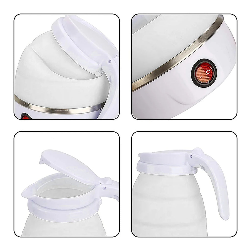 Chaleira elétrica dobrável é a solução perfeita para aquecer a água para passar café, fazer chá, ou ser utilizado como chaleira. Seu design compacto e inteligente permite dobrar para levar para qualquer lugar, ou guardar ocupando menos espaço. Com silicone de alta qualidade seguro e não tóxico, e aço inoxidável 304 sendo resistente e durável. Leve e portátil para transportar, e simples e prático de utilizar.